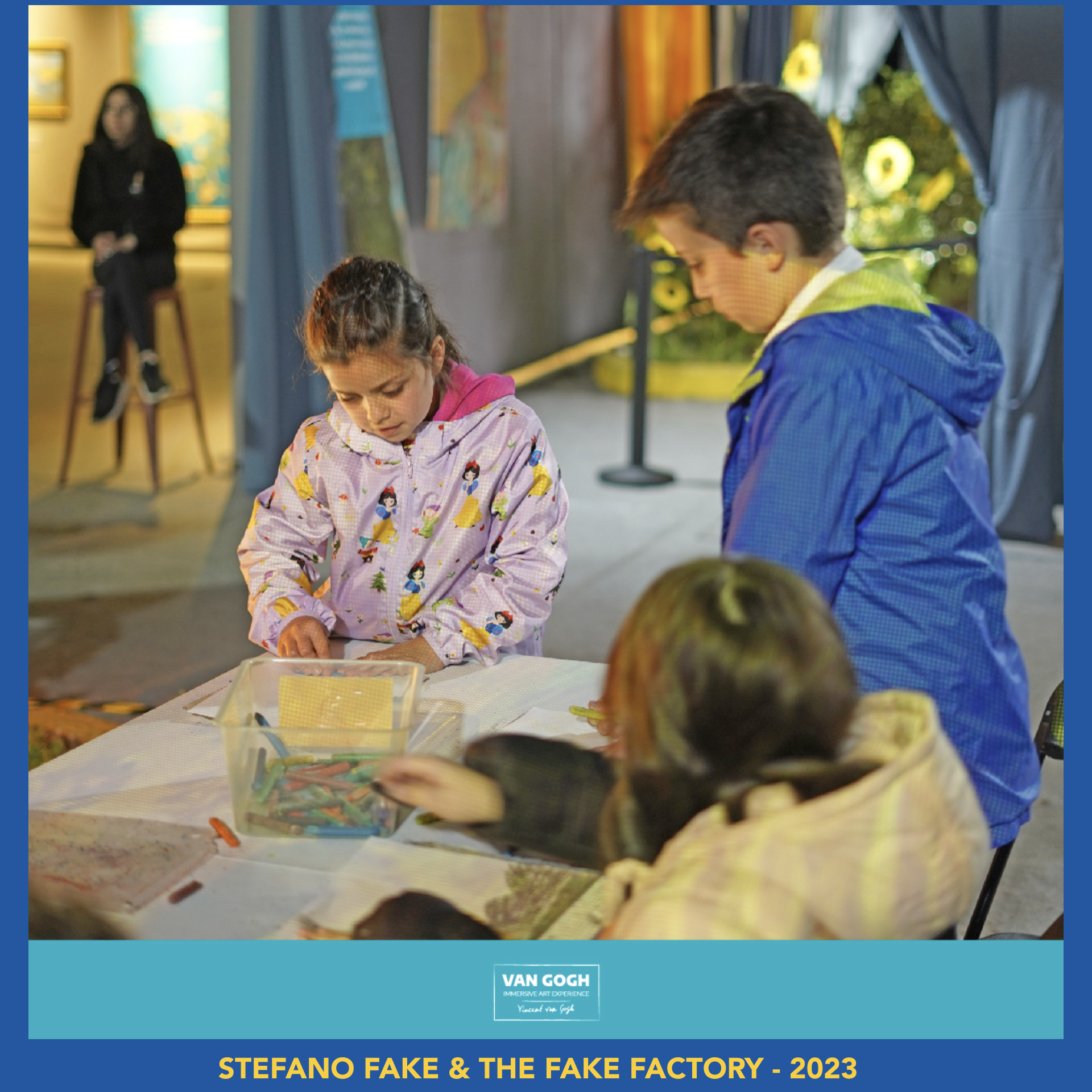 Este tipo de instalaciones audiovisuales pretende sumergir al espectador en el interior de la propia obra de arte, a través de tecnologías digitales y videoproyecciones monumentales. Las experiencias diseñadas y creadas por STEFANO FAKE & THE FAKE FACTORY han contribuido a definir el formato, el lenguaje y el éxito de las instalaciones digitales inmersivas, gracias a una serie de récords de asistencia en museos italianos e internacionales. Muchas de las instalaciones artísticas creadas por The Fake Factory se han convertido en piedras angulares del arte digital inmersivo contemporáneo.