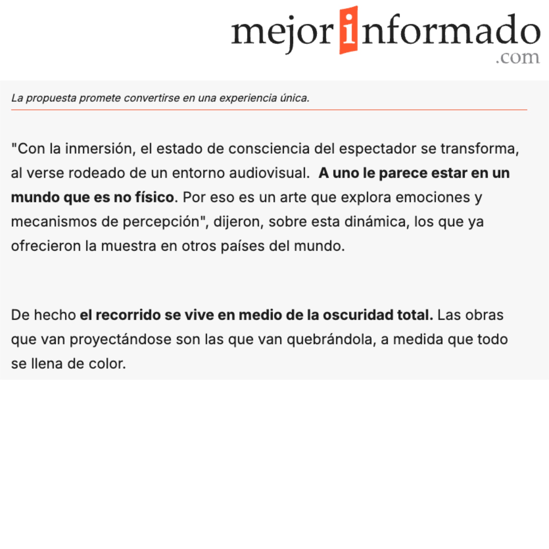 En este marco, la tecnologรญa no sustituye a la pintura, sino que amplifica su dimensiรณn espiritual. La inmersiรณn se convierte en un proceso empรกtico: el color en movimiento transmite la tensiรณn nerviosa de la pincelada; la luz hace perceptible la inestabilidad emocional; el componente sonoro estructura una temporalidad narrativa que acerca al espectador a la vida interior del artista. La VAN GOGH IMMERSIVE ART EXPERIENCE se configura asรญ como una obra autรณnoma de arte digital, capaz de establecer un diรกlogo con el original sin recurrir a la imitaciรณn, transformando la contemplaciรณn en participaciรณn y el espacio museรญstico en relato sensorial.